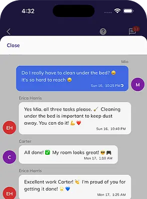 Comunícate con los miembros de la familia sobre tareas específicas a través de hilos de chat dedicados para hacer preguntas, proporcionar actualizaciones u ofrecer ánimo.