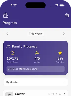 La aplicación de tareas hace que sea divertido y gratificante para los miembros de la familia completar sus tareas asignadas.